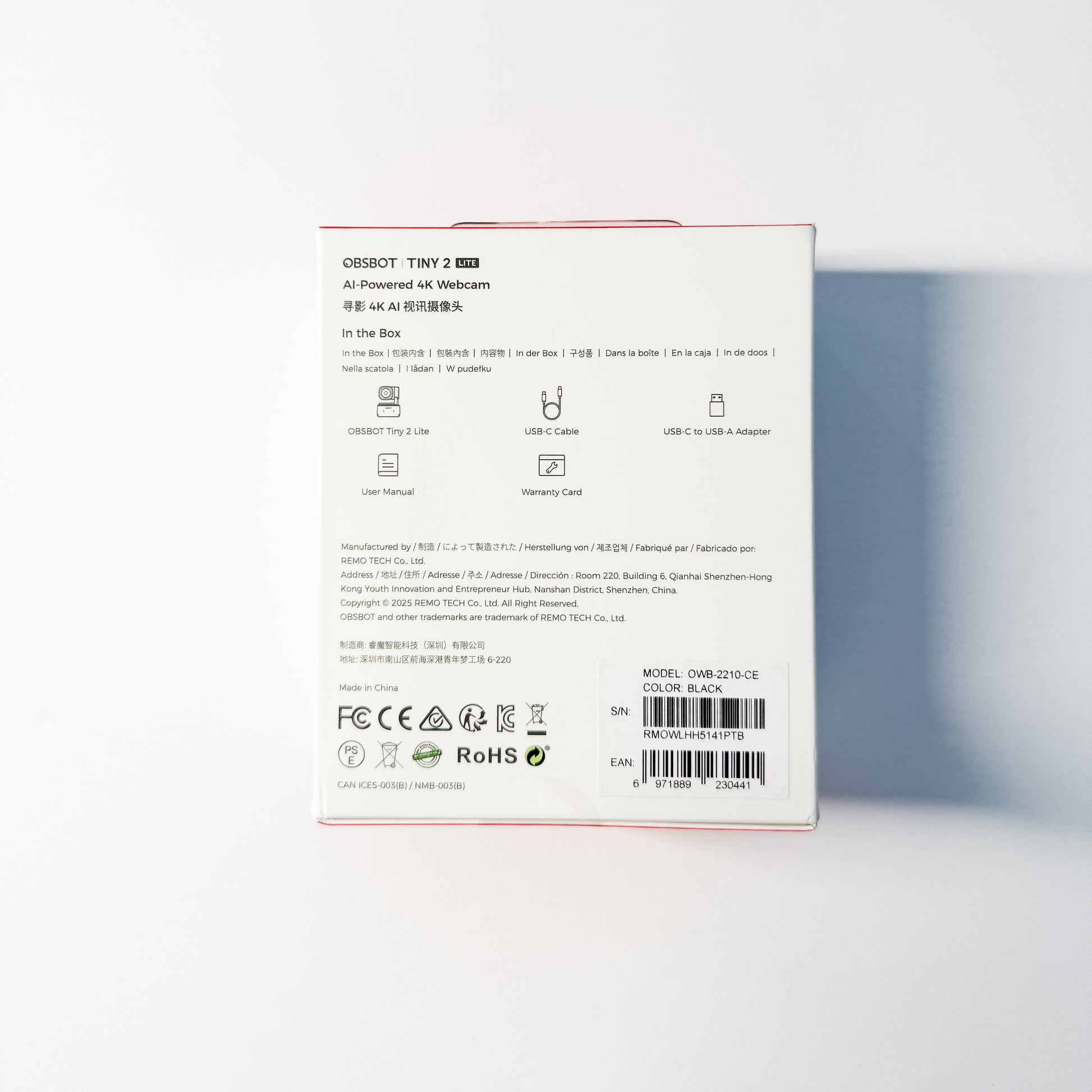 OBSBOT Tiny 2 Lite Webcam - 4K AI Tracking